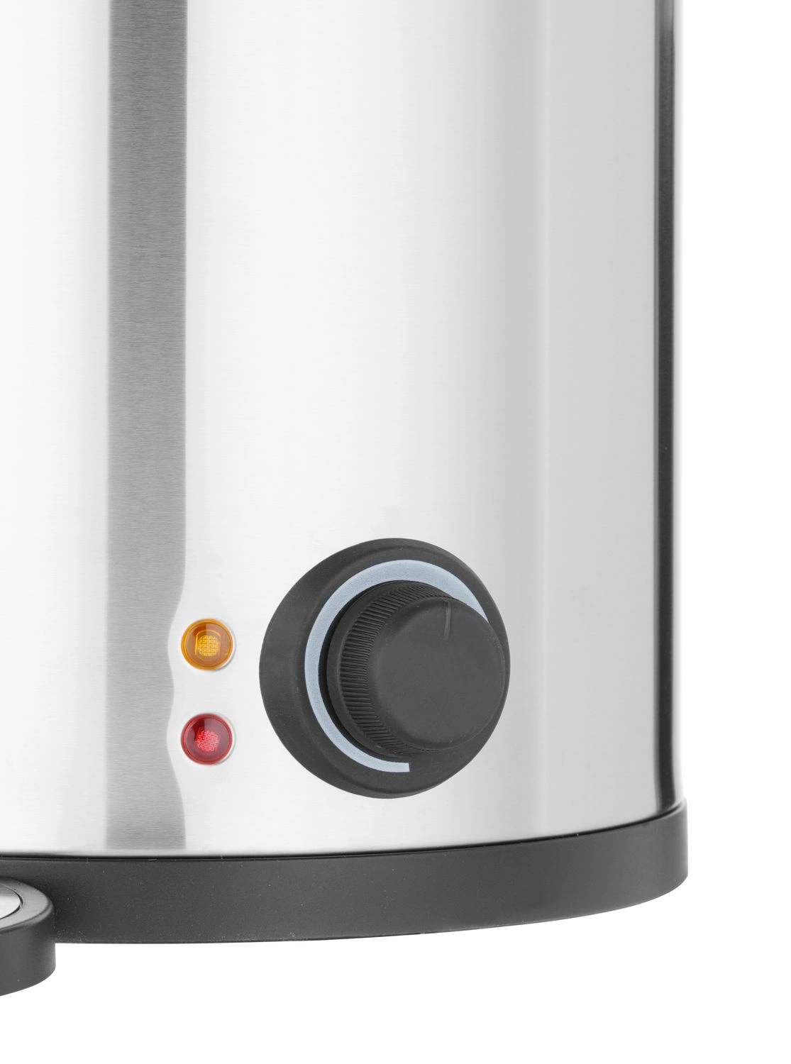 Temperatura sterowana za pomocą termostatu w zakresie 30 - 100°C. Automatyczne przełączenie funkcji grzania i podtrzymania żądanej temperatury. Lampki kontrolne funkcji grzania i podtrzymywania temperatury. Grzałka umieszczona pod dnem, zabezpieczona przed zakamienieniem. Zabezpieczenie przed przegrzaniem z ręcznym .