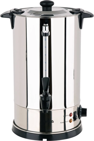 Warnik do wody YATO o pojemności 8,8 l wykonany ze stali nierdzewnej wysokopolerowanej. Nienagrzewające się uchwyty nierdzewne pokryte tworzywem. Zakryta grzałka. Zabezpieczenie przed przegrzaniem oraz przed pracą na sucho. Zakres temperatury urządzenia to 30 do 110 stopni celsjusza. Pokrywka z systemem TWIST-LOCK umożliwia szczelne zamknięcie. W obudowie zamontowany wskaźnik wody. Urządzenie posiada kranik z systemem zapobiegającym kapaniu