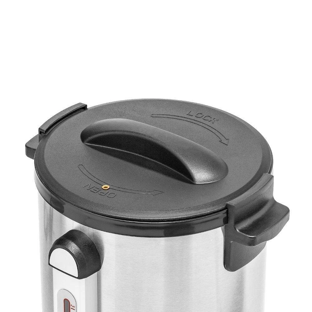 Warnik oferuje pojemność użytkową 9 litrów, dzięki czemu jest w stanie obsłużyć większe grupy osób, np. podczas konferencji, imprez okolicznościowych czy w firmowych stołówkach. Kompaktowa średnica 20,5 cm sprawia, że urządzenie nie zajmuje dużo miejsca na blacie, a jednocześnie zapewnia wystarczającą ilość gorącej wody przez dłuższy czas bez konieczności częstego uzupełniania wsadu.