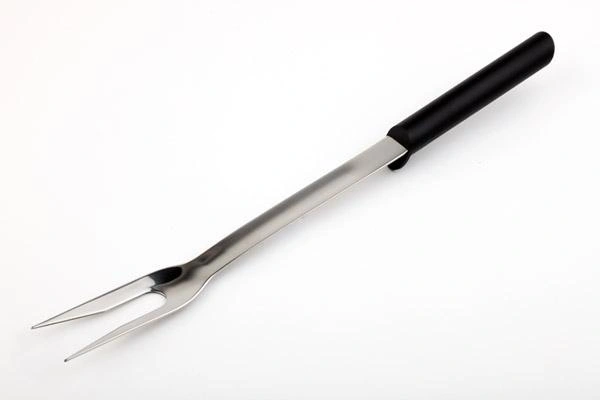 Prezentowany widelec do mięs został zaprojektowany z myślą o wygodnej obsłudze dużych porcji mięsa, zarówno podczas pieczenia, grillowania, jak i serwowania na stół. Długi trzonek pozwala na bezpieczną manipulację nawet nad gorącymi naczyniami, a solidne zęby pewnie wbijają się w mięso, ułatwiając jego przenoszenie i krojenie. Antypoślizgowy uchwyt ABS minimalizuje ryzyko upuszczenia produktu nawet przy mokrych dłoniach. Prosta, ale wytrzymała konstrukcja zapewnia wieloletnią żywotność i łatwość czyszczenia.