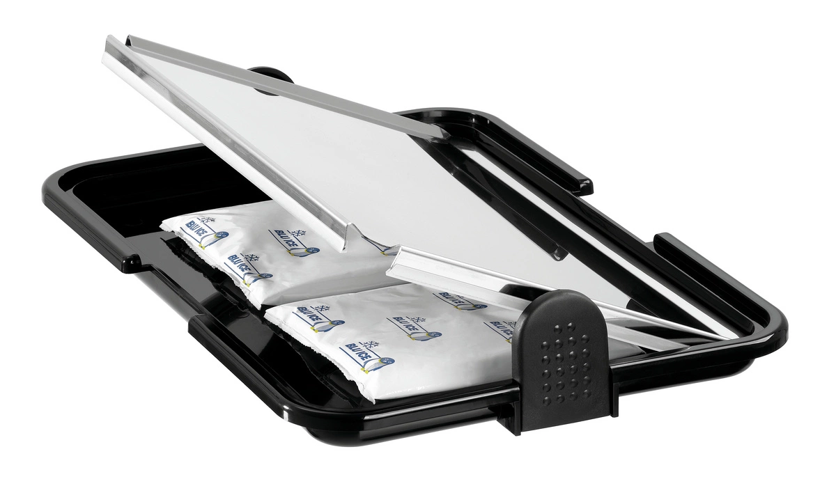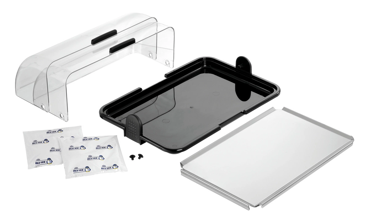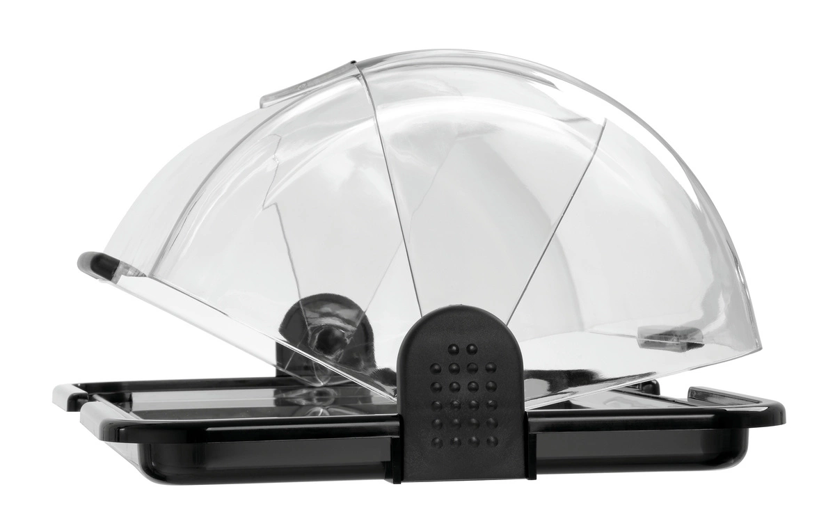Przezroczysta pokrywa roll top umożliwia wygodny dostęp do potraw z obu stron oraz zapewnia higienę i ochronę przed zanieczyszczeniami.