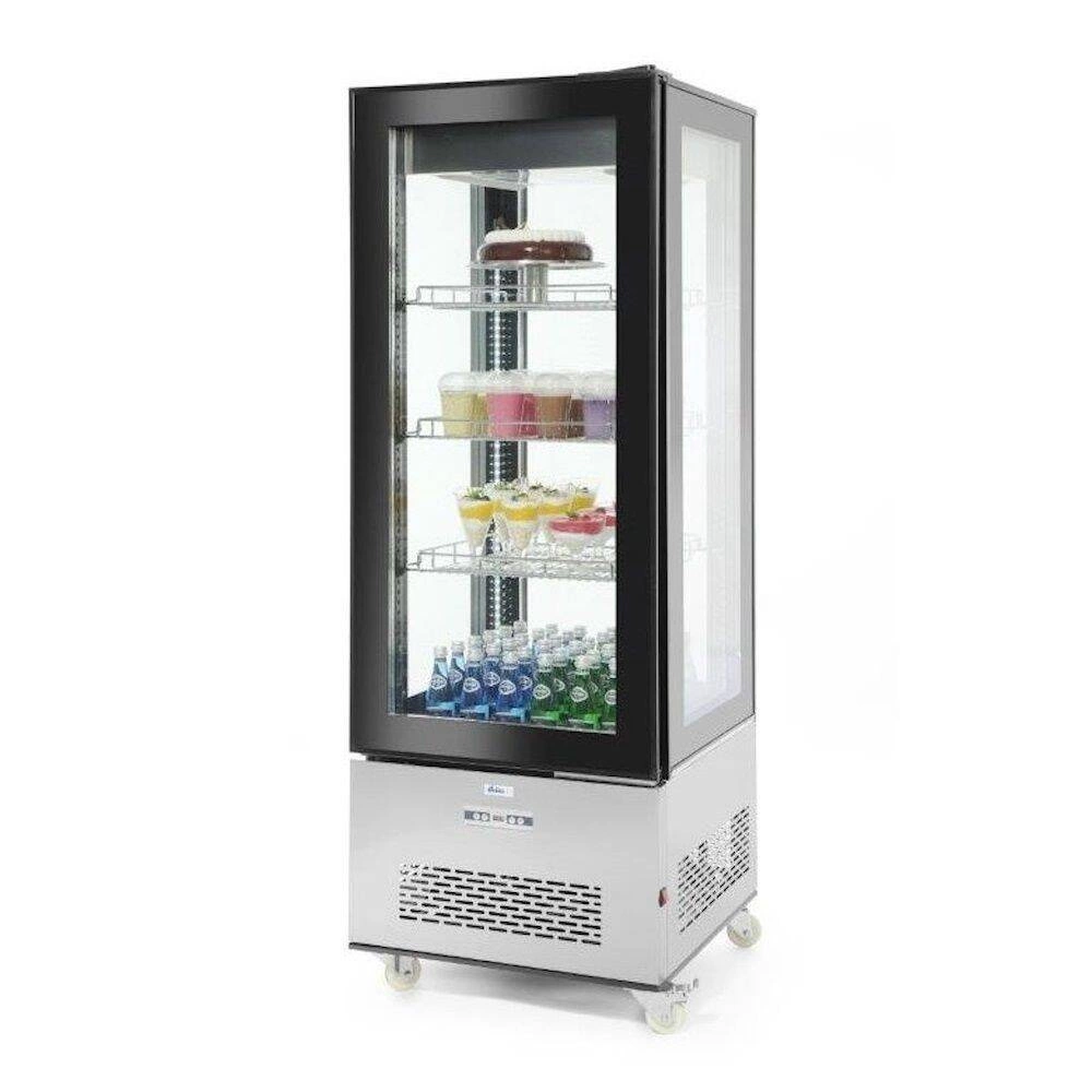Witryna chłodnicza HENDI 233283 o pojemności 550 litrów to profesjonalne urządzenie chłodnicze przeznaczone do ekspozycji i przechowywania żywności, napojów oraz innych produktów wymagających kontrolowanej temperatury. Charakteryzuje się dużą pojemnością, nowoczesnym oświetleniem LED oraz dynamicznym systemem chłodzenia, który zapewnia równomierny rozkład temperatury w całej komorze. Doskonale sprawdzi się w sklepach spożywczych, restauracjach, cukierniach czy na stacjach benzynowych.