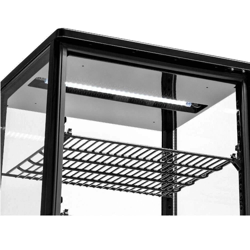 - Oświetlenie LED – równomiernie rozświetla wnętrze witryny, podkreślając walory estetyczne oferowanych produktów i zachęcając klientów do zakupu.