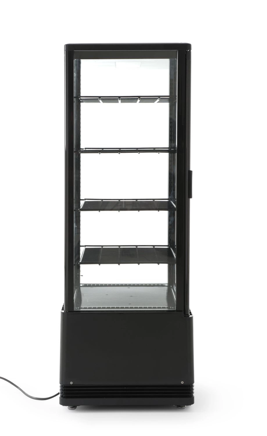 Witryna chłodnicza nastawna o pojemności 98 litrów. Obudowa wykonana ze stali malowanej na kolor czarny. Podwójnie przeszklona z łatwo otwieranymi drzwiami skrzydłowymi. Cyfrowy wyświetlacz, elektroniczny termostat. Chłodzenie wymuszone z automatycznym rozmrażaniem. Kanał powietrzny na zewnątrz szkła w celu usunięcia i zapobiegania kondensacji pary wodnej. Oświetlenie wewnętrzne w suficie. Przestawne stalowe półki, powlekane PCV.