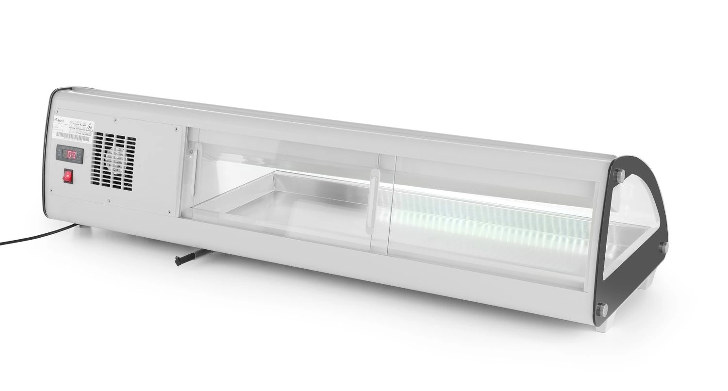 - Zakres temperatury: 3 do 7°C – umożliwia utrzymanie świeżości sushi i innych potraw wymagających chłodzenia.