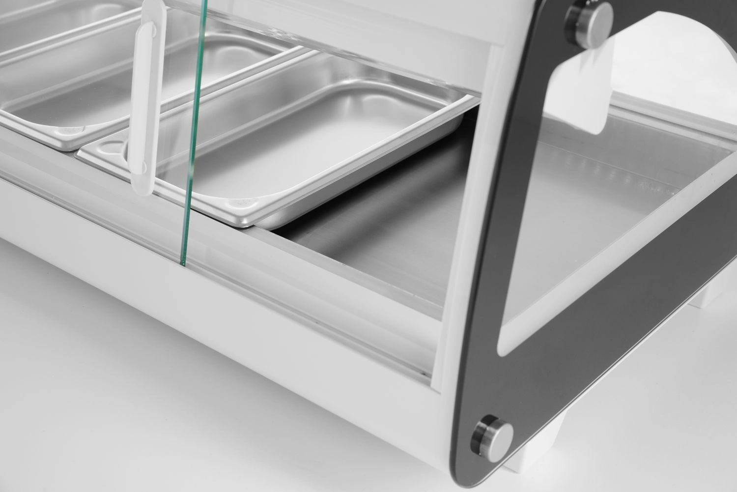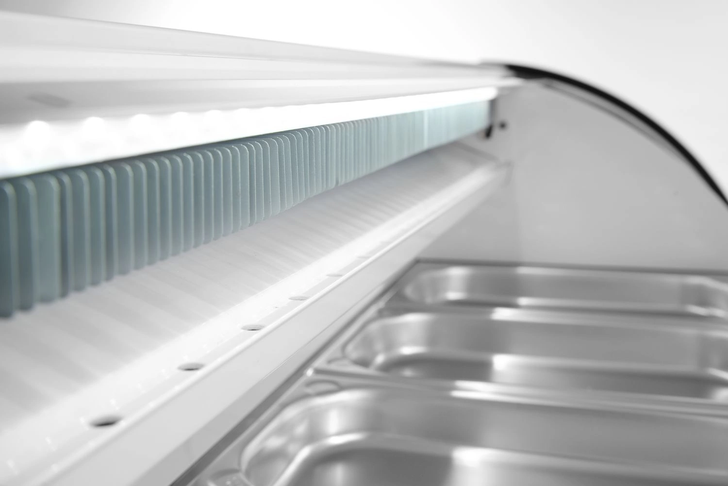 - Oświetlenie LED – zainstalowane na górze komory, oświetlenie LED podkreśla walory estetyczne prezentowanych produktów, a jednocześnie jest energooszczędne.
