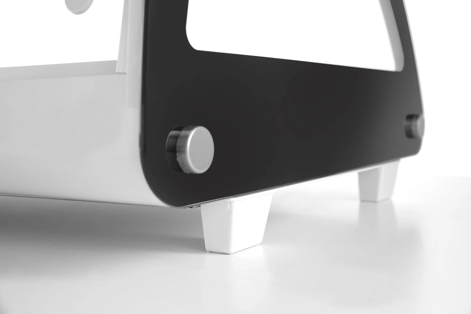 - Nowoczesna konstrukcja – wykonanie ze stali nierdzewnej malowanej na biało zapewnia trwałość, łatwość czyszczenia i elegancki wygląd, który doskonale prezentuje się w każdym wnętrzu.