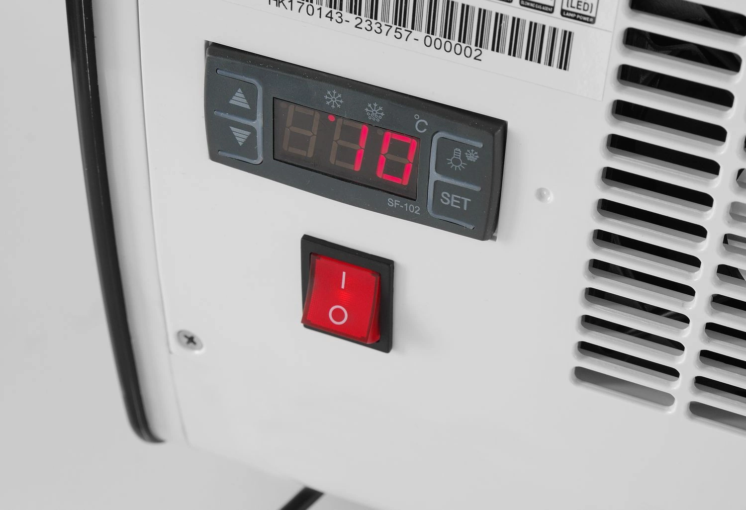 - Precyzyjna kontrola temperatury – elektroniczny termostat i cyfrowy wyświetlacz umożliwiają dokładne ustawienie i monitorowanie temperatury, co zapewnia optymalne warunki przechowywania sushi.