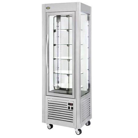 Witryna chłodnicza obrotowa o pojemności 360 l i kolorze srebrnym