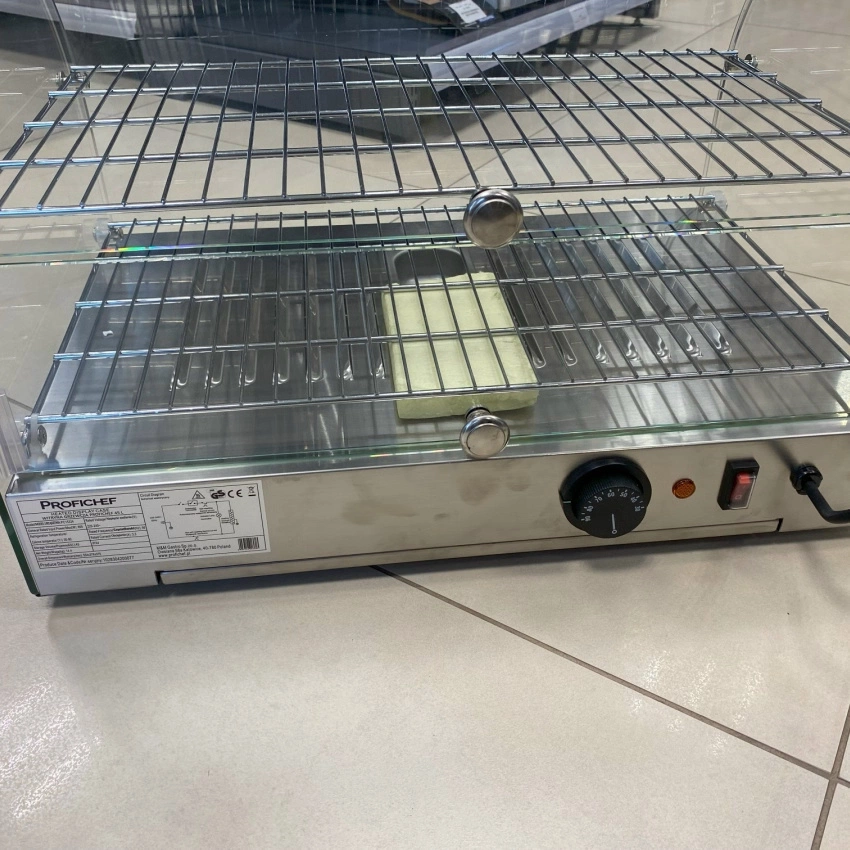 Witryna grzewcza 2-poziomowa 45 l PROFICHEF PC15324 to profesjonalne urządzenie służące do utrzymywania w cieple i prezentowania przekąsek, ciast oraz innych dań. Zaprojektowana z myślą o gastronomii, cukierniach i stacjach paliw, pozwala na serwowanie świeżych, apetycznych potraw przez dłuższy czas. Jej atutem jest dwupoziomowa konstrukcja oraz elegancki wygląd z wykorzystaniem hartowanego szkła.