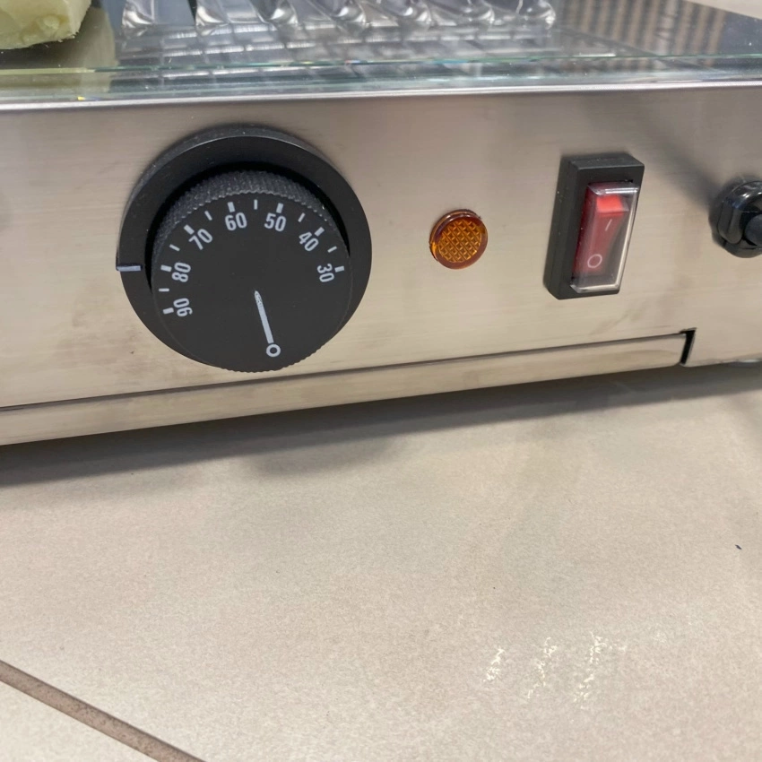 Konstrukcja witryny wykonana jest z wysokiej jakości materiałów – hartowane szkło zapewnia odporność na uszkodzenia mechaniczne i wysokie temperatury, a stal nierdzewna w podstawie ułatwia czyszczenie oraz podnosi trwałość urządzenia. Zaokrąglona przednia szyba nadaje nowoczesny wygląd i zwiększa bezpieczeństwo oraz komfort obsługi. Dwa poziomy ekspozycji pozwalają oddzielać różne rodzaje potraw, np. słodkie wypieki na jednej półce i ciepłe przekąski na drugiej. Dzięki temu urządzenie sprawdzi się zarówno w cukierniach, barach szybkiej obsługi, jak i na stacjach paliw.