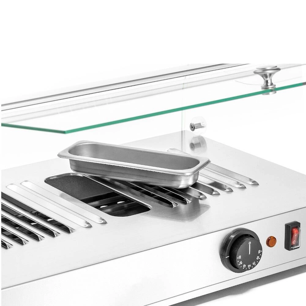- Jednopoziomowa konstrukcja – umożliwia łatwe rozmieszczenie i szybki dostęp do podgrzewanych potraw, co usprawnia obsługę w miejscach o dużym ruchu.