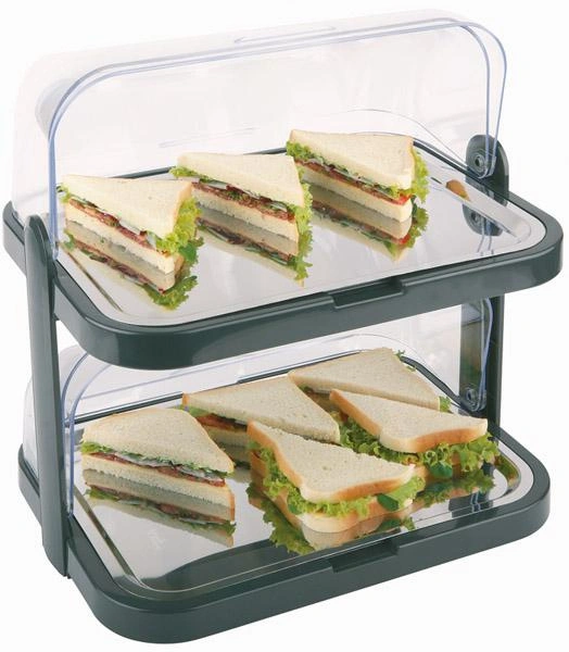 - Przezroczyste pokrywy otwierane z obu stron – zapewniają łatwy dostęp do potraw niezależnie od ustawienia witrynki na stole, a jednocześnie chronią zawartość przed czynnikami zewnętrznymi.