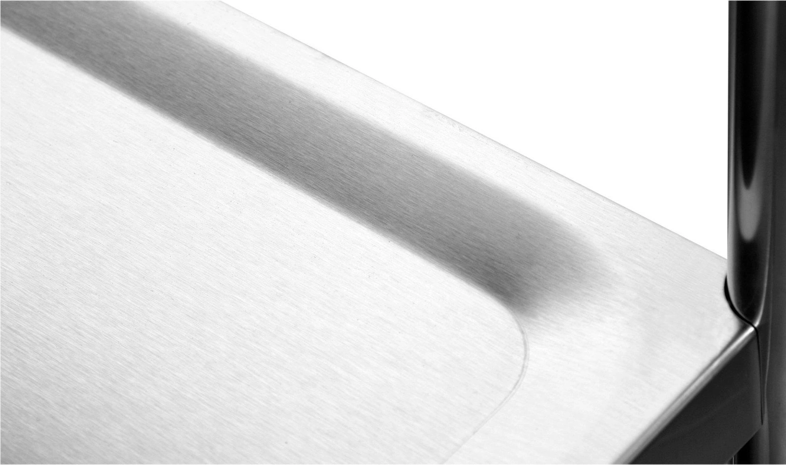 Maty dźwiękochłonne pod każdą półką absorbują drgania i hałas, chroniąc transportowane produkty przed uszkodzeniem podczas przewożenia. Dwie duże półki, o wymiarach 82x50 cm i grubości 0,8 mm, zabezpieczone specjalnym rantem zapobiegają ześlizgnięciu się produktów podczas przewożenia. Zaokrąglone krawędzie zwiększają bezpieczeństwo podczas użytkowania. Optymalny rozstaw między półkami wynoszący 57 cm. Każda półka może utrzymać do 50 kg, co sprawia, że wózek jest idealny do przenoszenia różnorodnych produktów. Cztery kółka z łożyskami wykonane z elastycznego TPR są niezwykle ciche, skrętne o 360° oraz nie rysują posadzki. Dwa kółka posiadają dodatkowo hamulce, zapewniając stabilność podczas postoju.