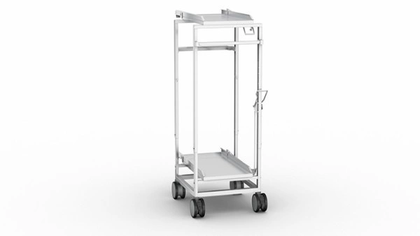Wyposażony w duże, podwójne kółka skrętne o cichej, higienicznej konstrukcji, wózek zapewnia bezpieczny i płynny transport potraw w każdych warunkach kuchennych. Obsługuje jednocześnie oba urządzenia Combi-Duo, znacznie przyspieszając pracę. Do jego działania niezbędna jest oddzielna szyna wjazdowa typu Standard.
