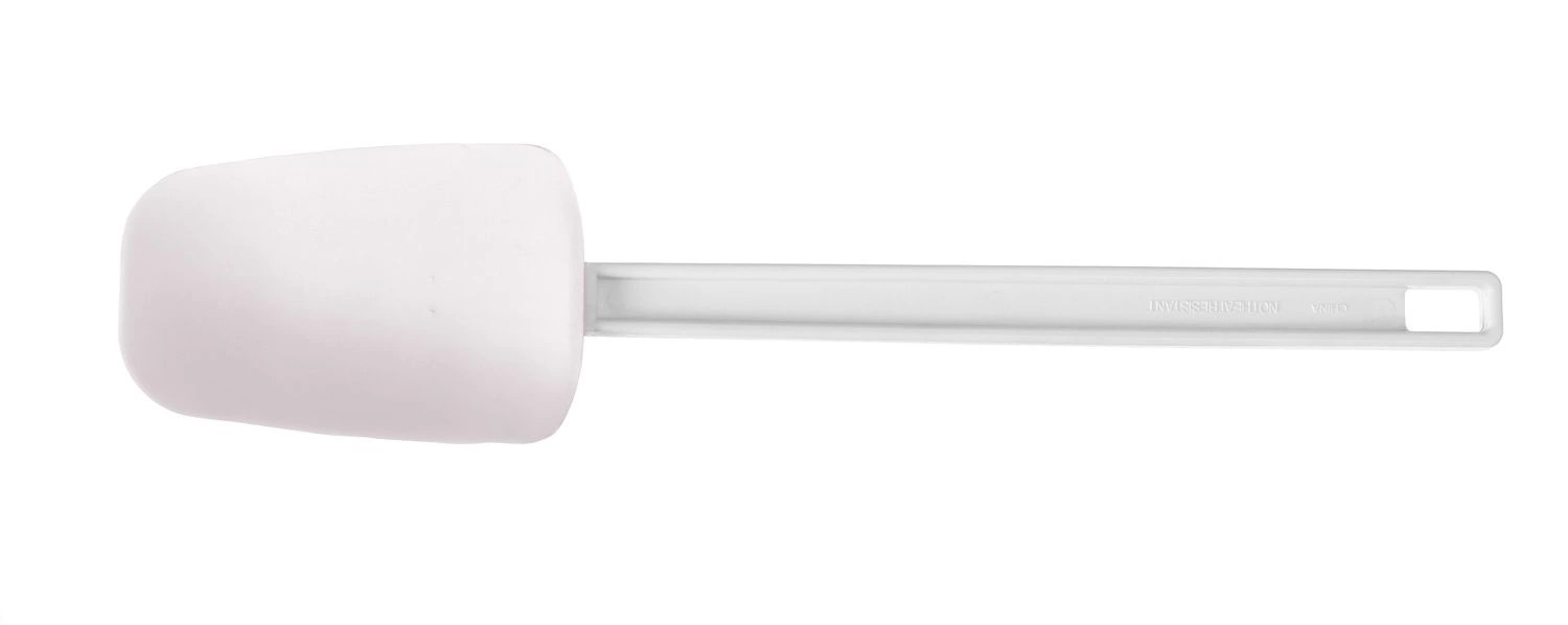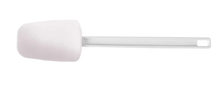 Wybierak do ciasta w kształcie łyżki . Uchwyt wykonany z tworzywa ABS . Łopatka wykonana z syntetycznej gumy. Nadaje się do gorących potraw. Można myć w zmywarkach.