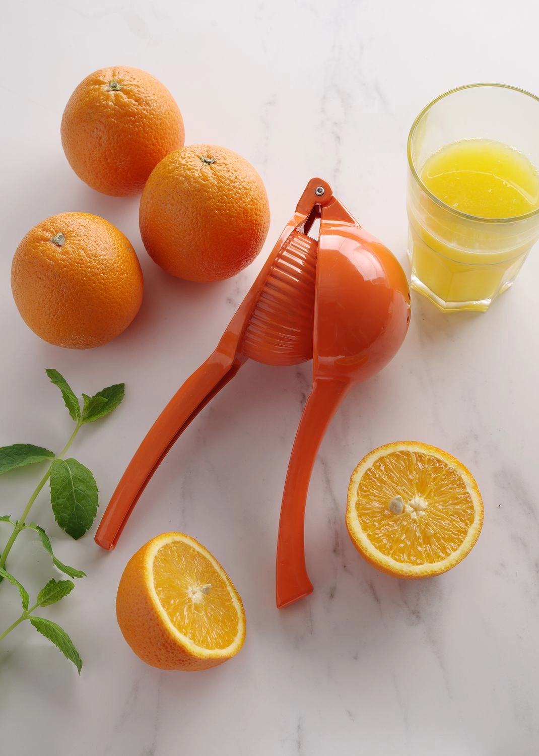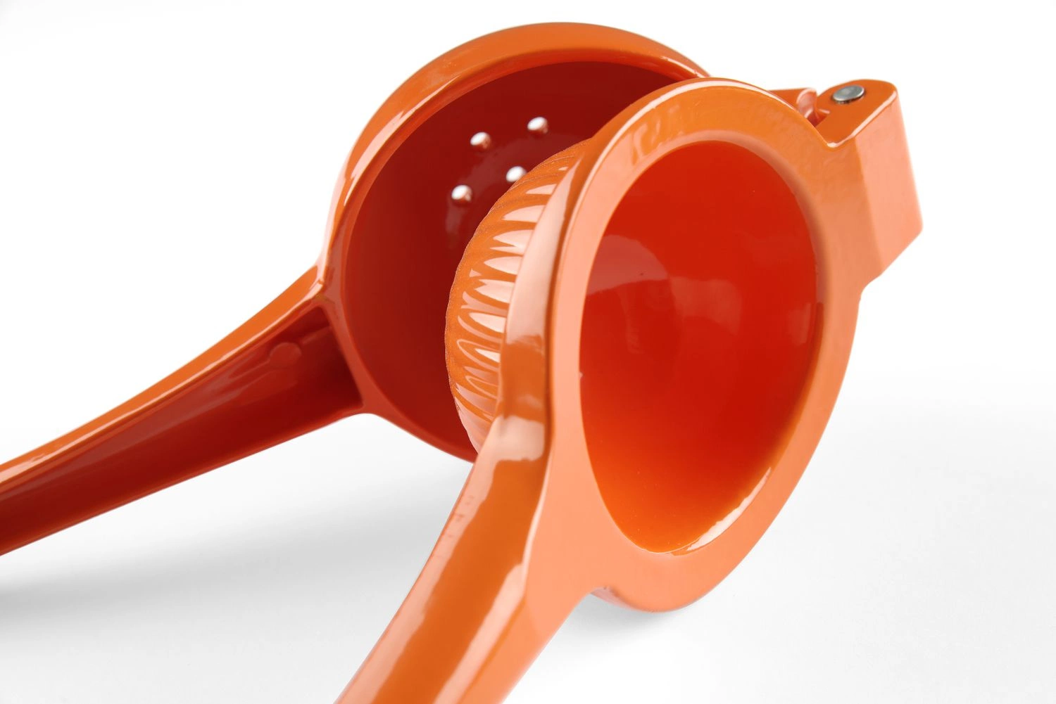 Wyciskarka do cytrusów (do pomarańczy) o wymiarach 23,2x9,1x6 cm. Wykonana ze stopu aluminium malowanego proszkowo na kolor pomarańczowy. Łatwa w utrzymaniu czystości. Odporna na uszkodzenia mechaniczne.