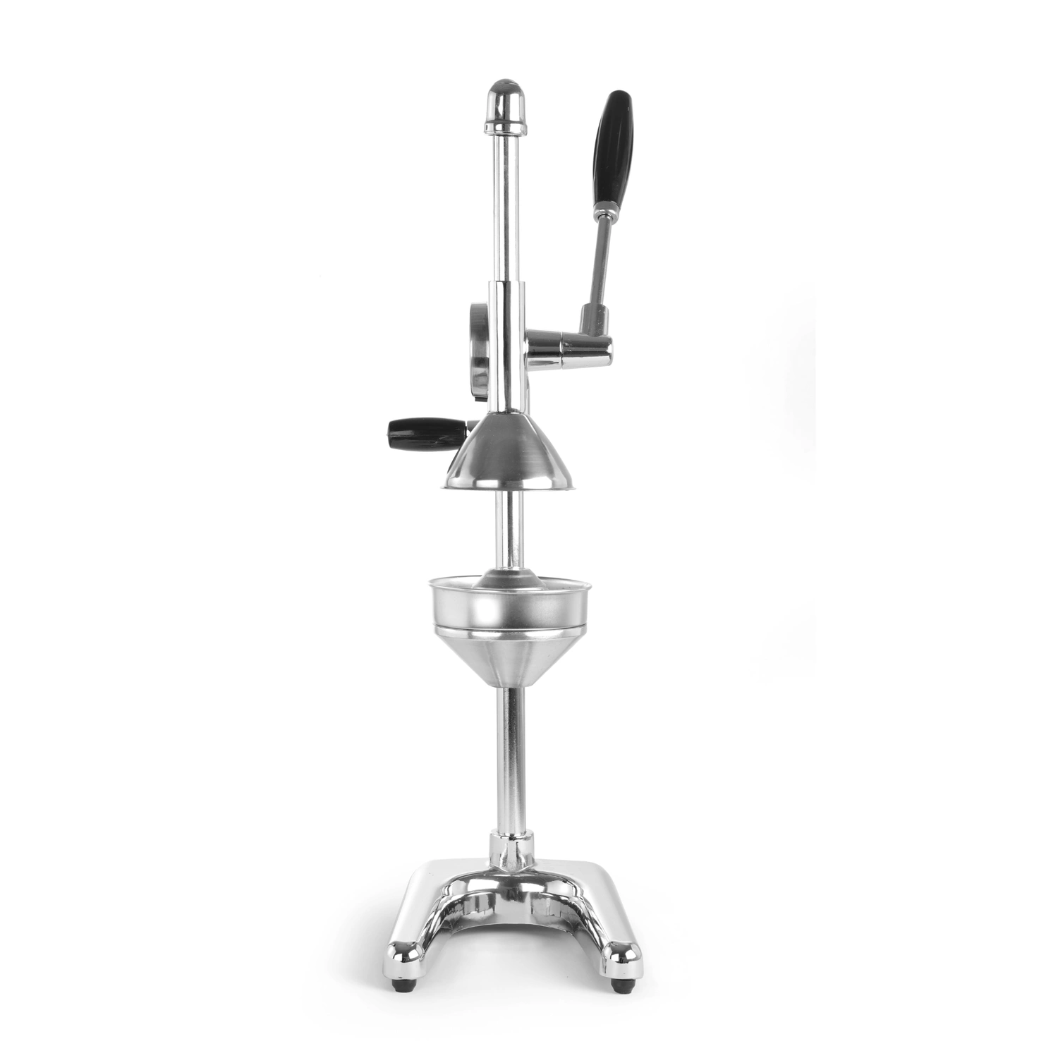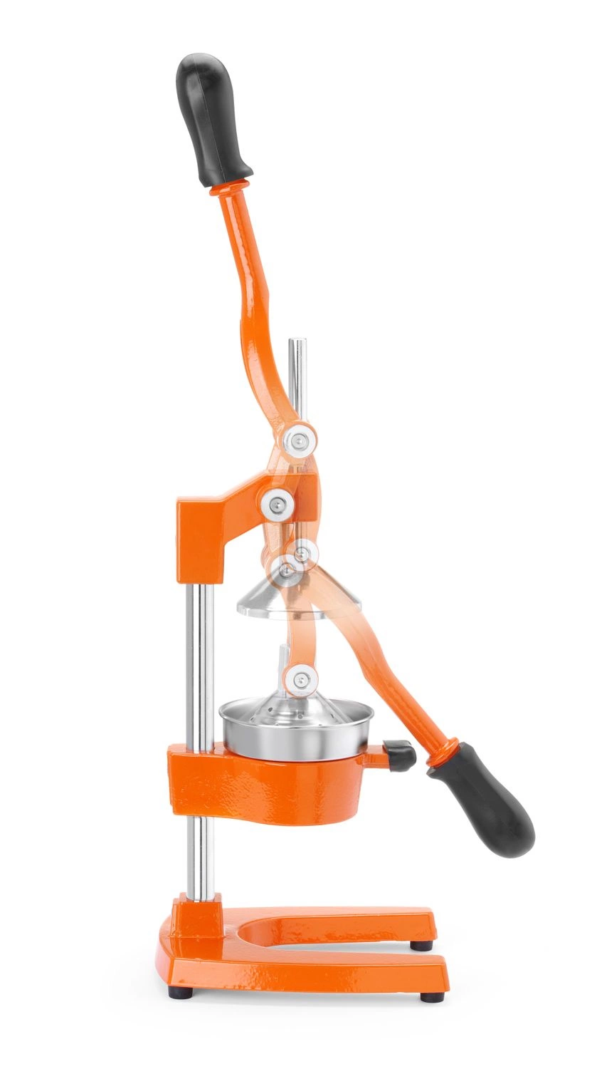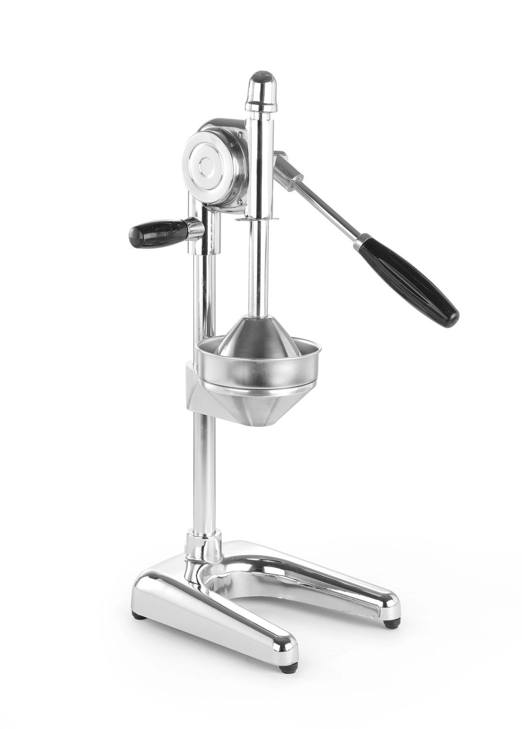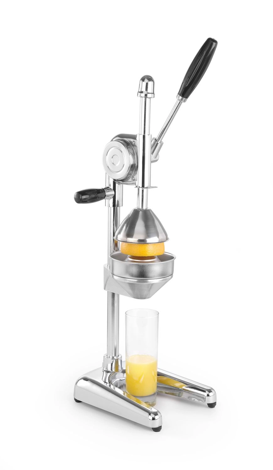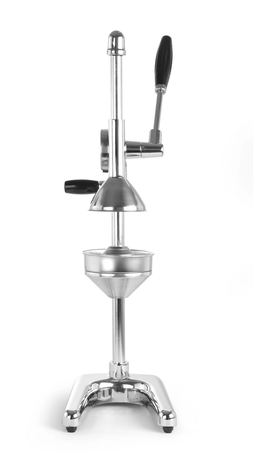 Ręczny wyciskacz do owoców cytrusowych. Wyciskarka wykonana z wysokiej jakości stopu cynku i stali nierdzewnej. Część wyciskająca (prasa i pojemnik) wykonane ze stali nierdzewnej. Dzięki zastosowaniu sprężyny wyciskarka powraca do pozycji początkowej.