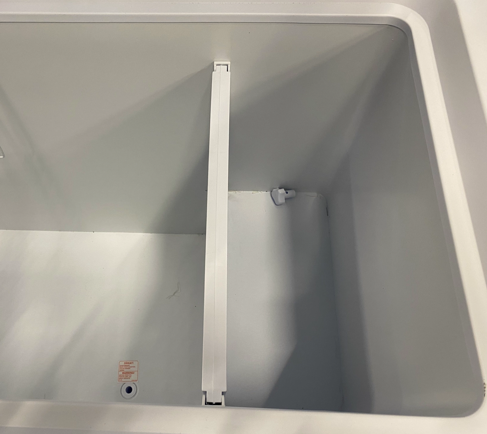 - Bezpieczeństwo i wygoda użytkowania – urządzenie posiada blokadę pozycji otwartej pokrywy oraz zamek, co zwiększa bezpieczeństwo przechowywanych produktów. Oświetlenie LED ułatwia korzystanie z zamrażarki nawet w słabo oświetlonych pomieszczeniach.