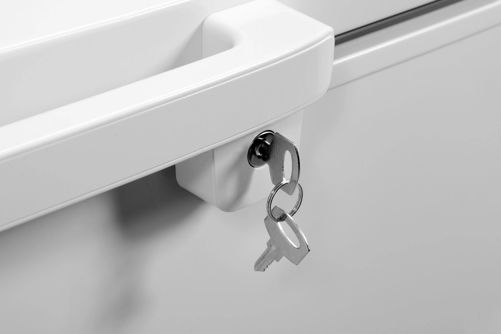 Zamrażarka skrzyniowa marki YATO o pojemności całkowitej 488 l. Przeznaczona jest do przechowywania produktów spożywczych w temperaturze od 10°C do -24°C. Samozamykające drzwi uchylne z zamkiem zapewniają łatwy dostęp do zawartości, jednocześnie utrzymując stałą temperaturę wewnątrz, co jest kluczowe dla zachowania świeżości produktów. Zamek gwarantuje bezpieczeństwo przechowywanych artykułów. Urządzenie posiada sterowanie elektronicznie z cyfrowym wyświetlaczem, co umożliwia precyzyjną kontrolę i dostosowanie warunków przechowywania do konkretnej potrzeby.