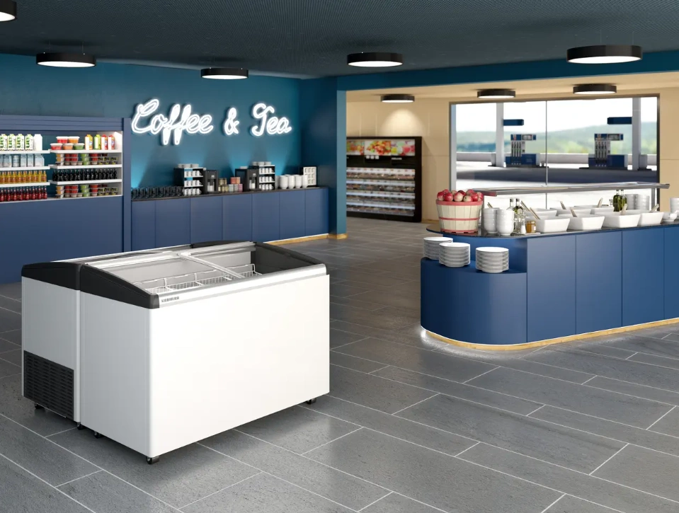 Zamrażarka skrzyniowa LIEBHERR EFI 4453 to doskonałe rozwiązanie dla sklepów, które chcą zaoferować wysoką jakość przechowywania mrożonych produktów w sposób atrakcyjny i profesjonalny. Dzięki energooszczędnemu oświetleniu LED, innowacyjnym materiałom oraz ekologicznym czynnikom chłodniczym, urządzenie to łączy efektywność energetyczną z wysoką jakością prezentacji. Idealne do punktów sprzedaży, które chcą zwiększyć swoją konkurencyjność i przyciągnąć klientów.
