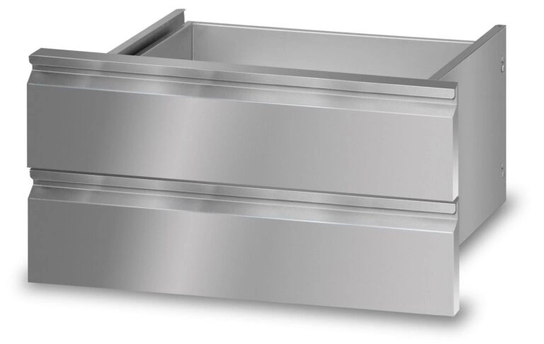 Zespół dwóch szuflad został zaprojektowany z myślą o łatwym montażu do podstawy z szafką w linii 700. Obie szuflady są pojemne i przystosowane do wkładania pojemników GN 2/1, co znacznie ułatwia organizację pracy w kuchni. Konstrukcja jest stabilna i odporna na uszkodzenia mechaniczne, dzięki czemu produkt sprawdzi się w najbardziej wymagających warunkach gastronomicznych. W skład zestawu wchodzą dwie szuflady o pojemności GN 2/1 i głębokości 100 mm, gotowe do natychmiastowego użytkowania po zamontowaniu.