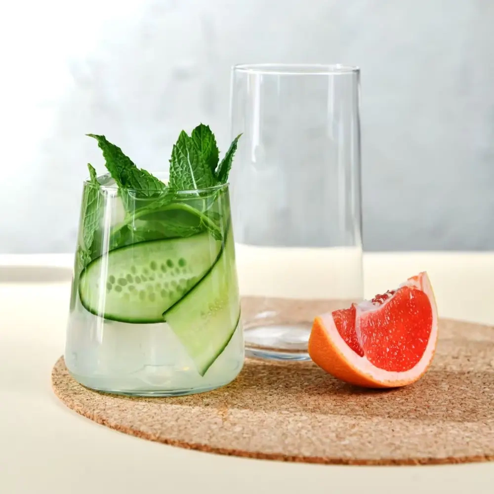 - Pojemność wysokich szklanek: 540 ml – przeznaczone do napojów zimnych, koktajli lub lemoniad.