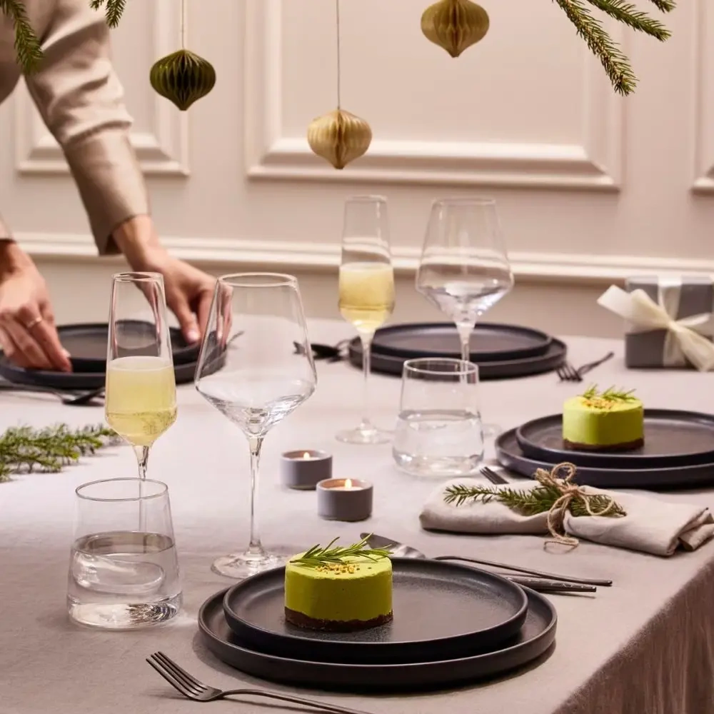 - Wysokość kieliszków do szampana: 248 mm – wysoka, wąska forma pozwala na długotrwałe utrzymanie bąbelków.