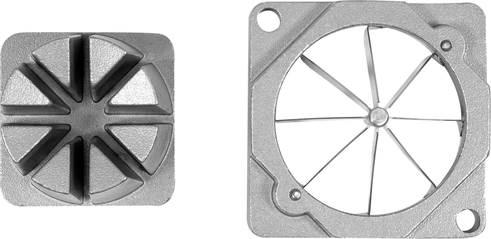Zestaw ostrzy umożliwia szybkie i precyzyjne krojenie ziemniaków w słupki, idealne do frytek i innych potraw.