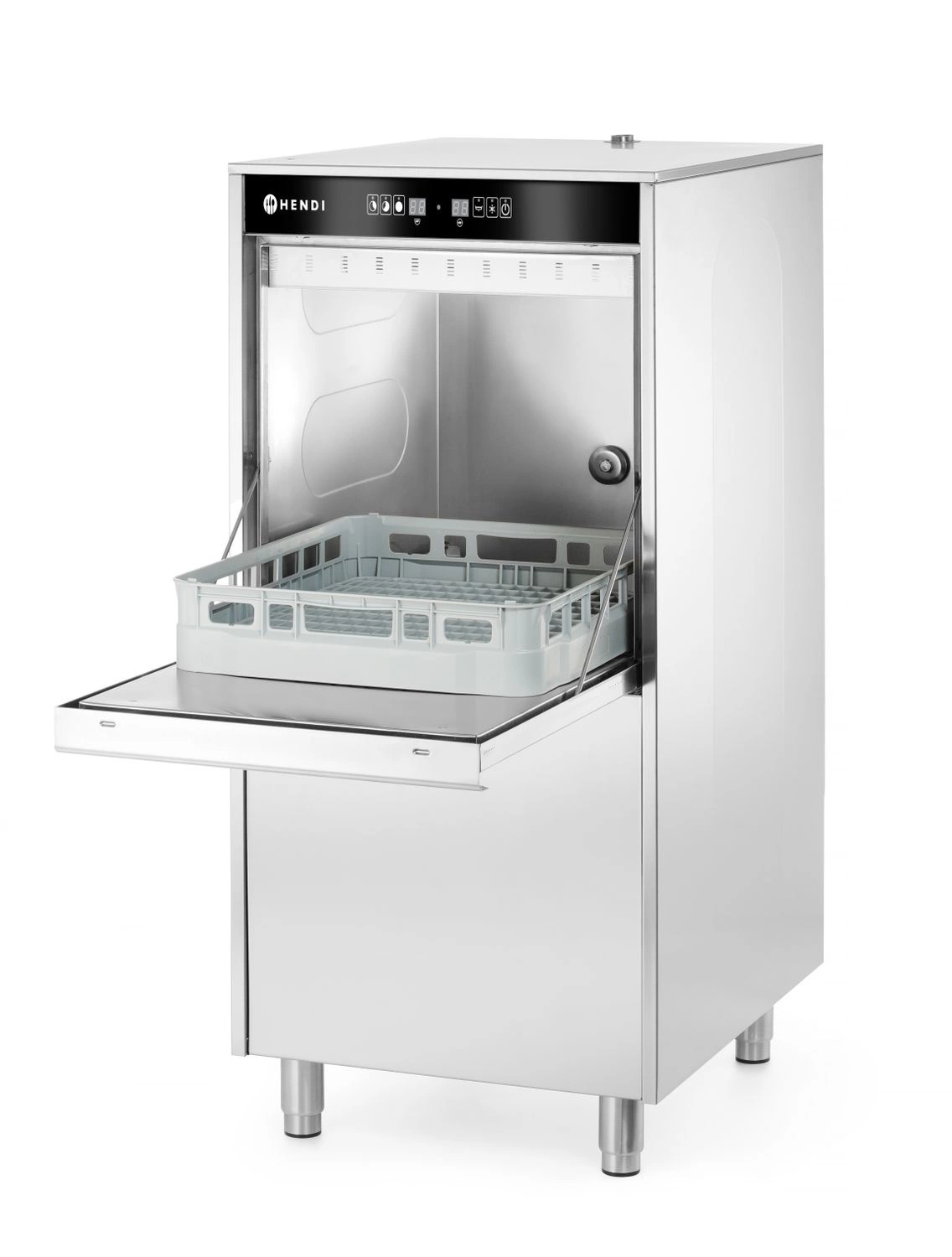 Mycie w zmywarce gastronomicznej może się odbywać wyłącznie przy użyciu profesjonalnych środków chemicznych przeznaczonych do zmywarek przemysłowych. Odpływ wody ze zmywarki standardowo odbywa się grawitacyjnie. W przypadku odpływu ściekowego w pomieszczeniu zamontowanego powyżej podłogi zmywarkę należy umieścić na podstawie.  Podwyższoną jakość mycia oraz ochronę przed osadzaniem się kamienia zapewni zamontowanie uzdatniacza wody.