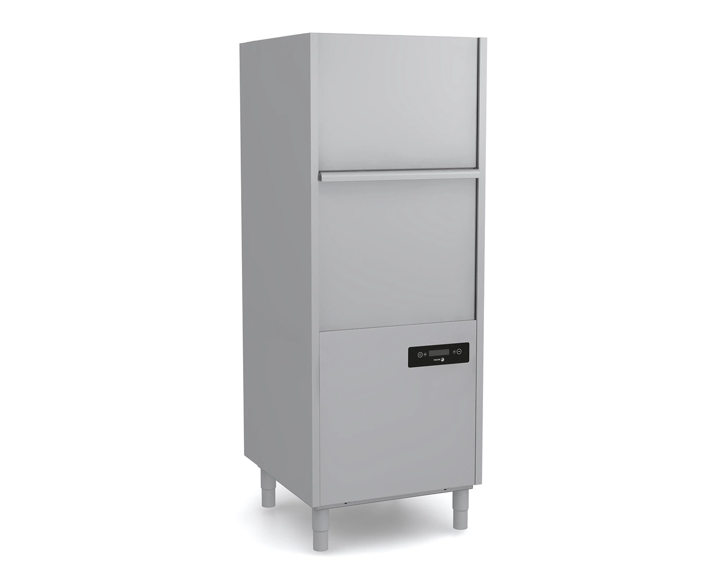 - Podwójne ścianki oraz wyciszone drzwi – konstrukcja zapewnia cichą pracę urządzenia oraz dodatkową izolację cieplną, co przekłada się na komfort użytkowania nawet w otwartych kuchniach.