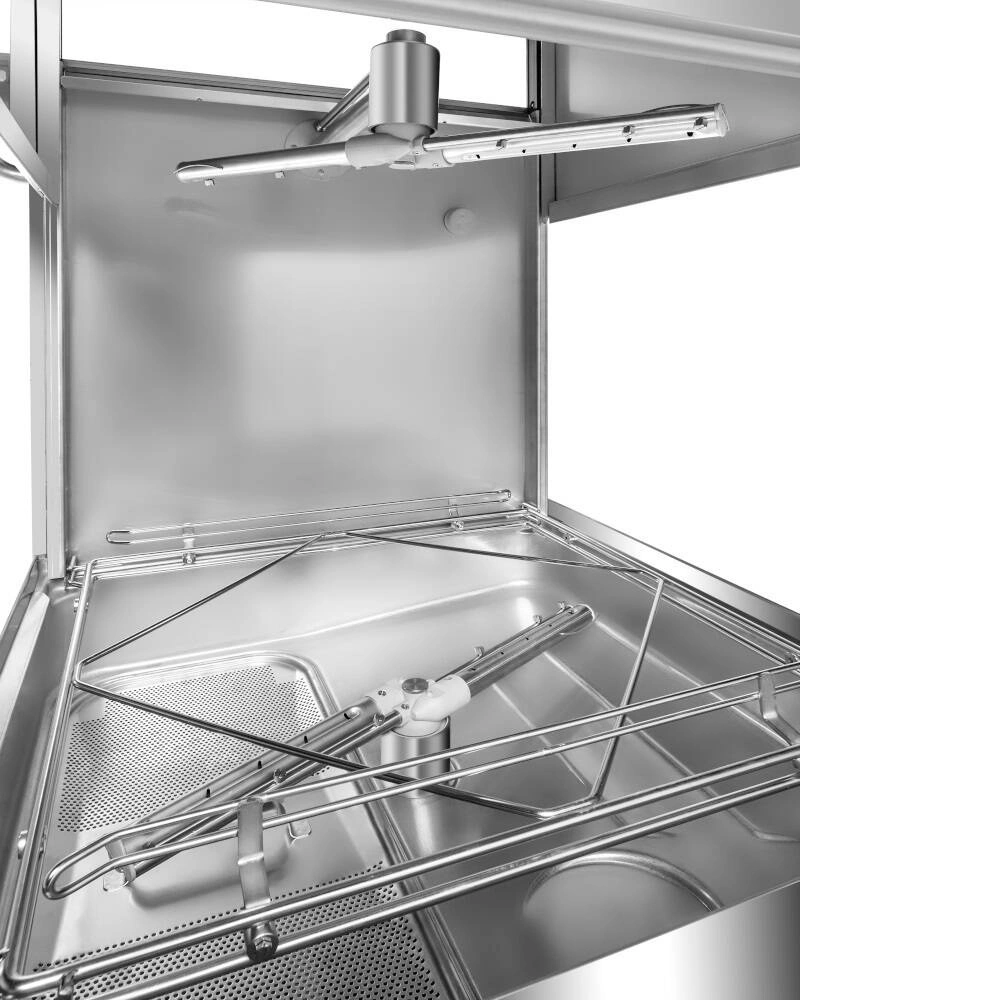 - Wymiary kosza: 50 x 50 cm – pozwalają na mycie dużych talerzy, tac oraz pojemników GN.