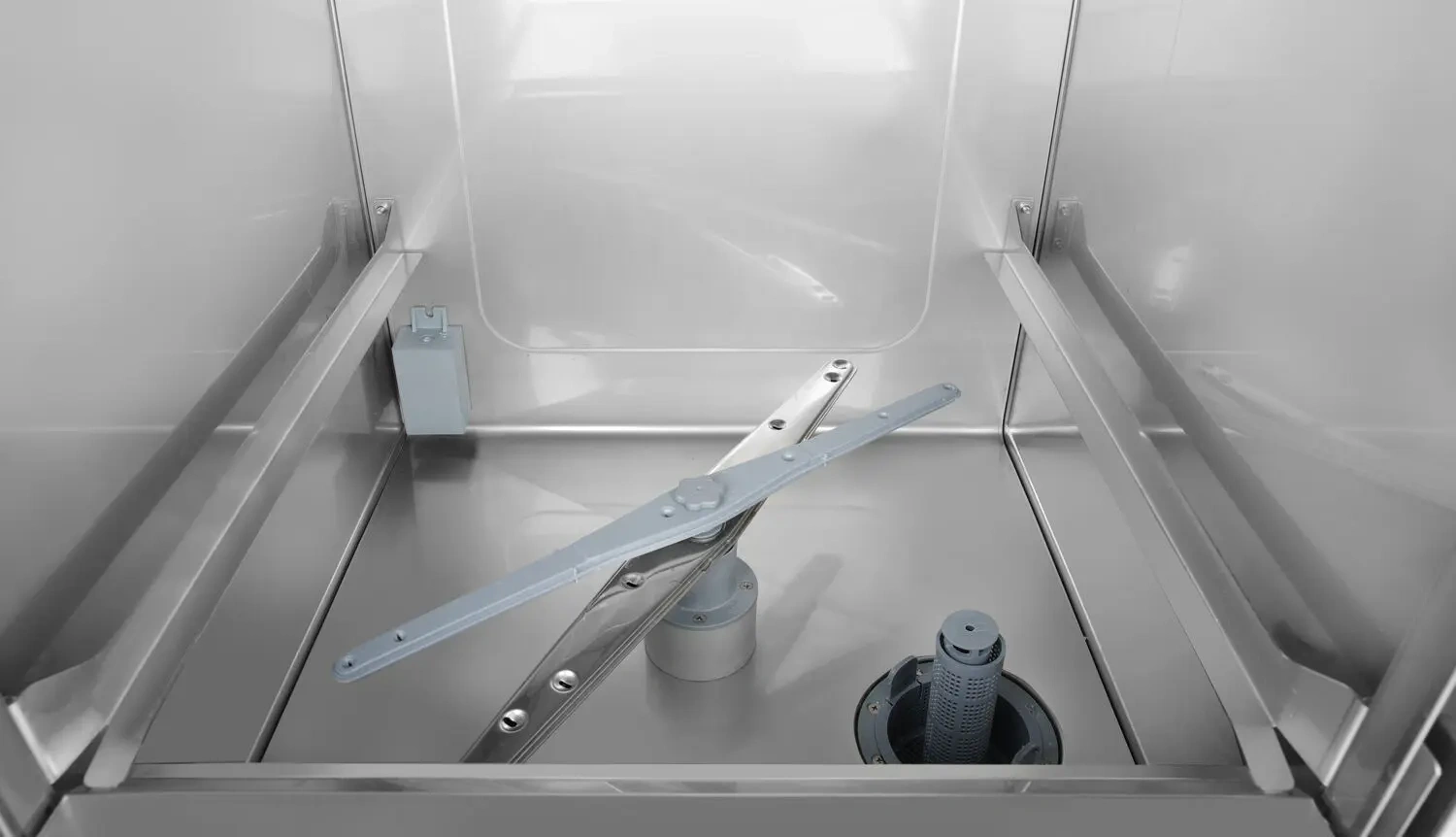 Zmywarka Doppio została stworzona z myślą o profesjonalnych kuchniach, gdzie wymagana jest szybka i wydajna praca. Obudowa ze stali nierdzewnej 18/8 gwarantuje odporność na korozję oraz ułatwia utrzymanie czystości. Urządzenie wyposażono w dwa oddzielne ramiona: myjące z tworzywa sztucznego i płuczące ze stali nierdzewnej, co pozwala na dokładne usunięcie zabrudzeń oraz skuteczne płukanie. Drzwi o konstrukcji dwuwarstwowej poprawiają izolację termiczną, a panel sterowania został zaprojektowany z myślą o intuicyjnej obsłudze i ergonomii. Dwa programy mycia umożliwiają dopasowanie cyklu do rodzaju i ilości naczyń.