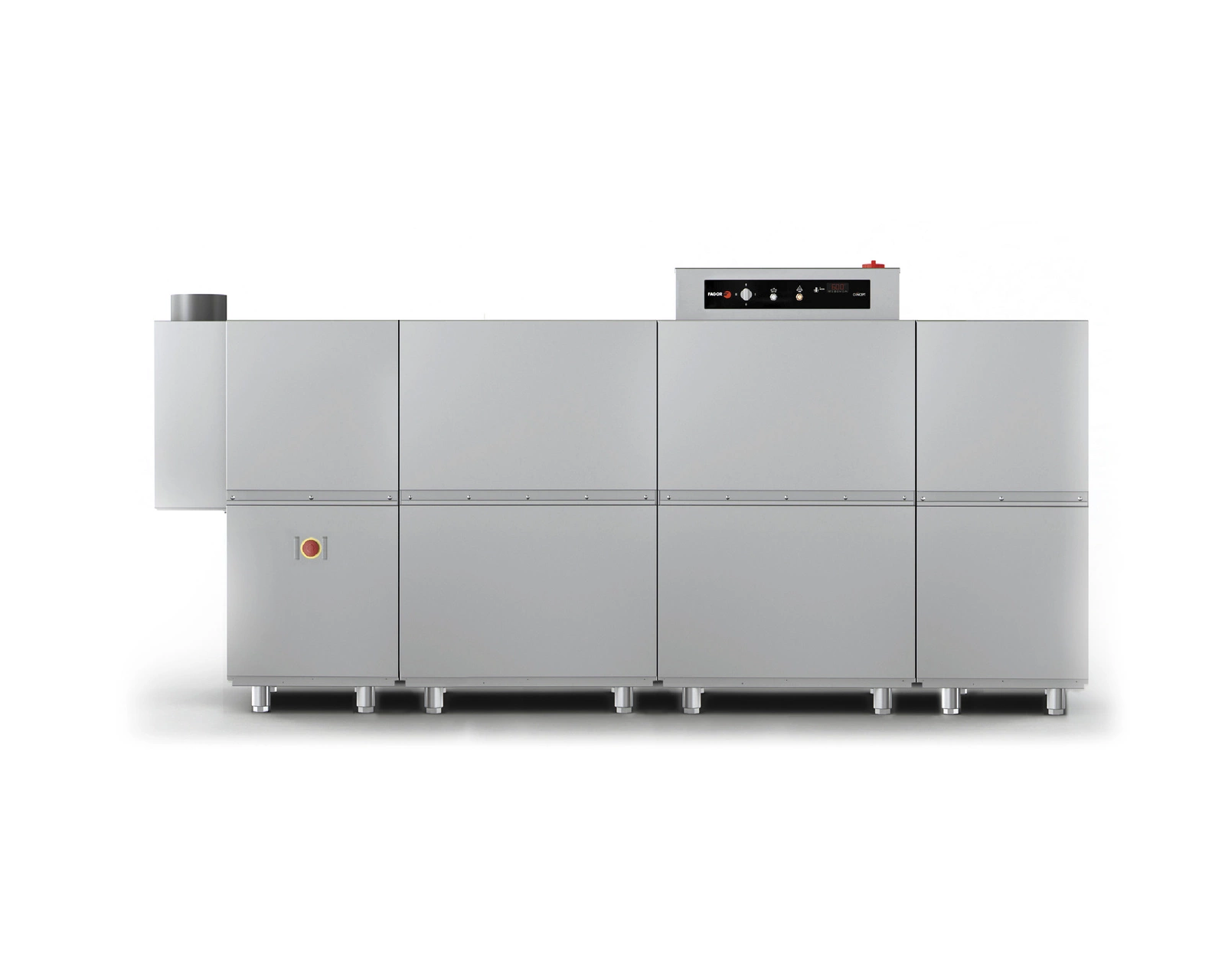 Zmywarka tunelowa CONCEPT została zaprojektowana z myślą o maksymalnej wydajności i wygodzie obsługi. Urządzenie ma długość 326 cm, co pozwala na sprawny przesuw koszy z prawej na lewą stronę oraz umożliwia jednoczesną obsługę kilku etapów mycia. Pojemność bojlera wynosi 7 litrów, co zapewnia ciągłość procesu płukania i wyparzania naczyń. Konstrukcja zmywarki obejmuje również podwójne płukanie, izolowany termicznie bojler oraz wygodne, dwupanelowe drzwi otwierane do góry, co znacznie ułatwia serwisowanie i czyszczenie urządzenia. Dzięki zastosowaniu filtrów i wyjmowanych tac, utrzymanie czystości wewnątrz zmywarki jest szybkie i proste.