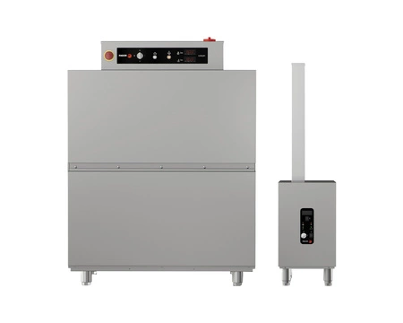 To urządzenie to idealne rozwiązanie dla dużych obiektów gastronomicznych, gdzie zmywanie naczyń odbywa się w trybie ciągłym. System mycia z podwójnym płukaniem oraz bardzo wydajny układ ramion myjących i płuczących gwarantuje najwyższą jakość czyszczenia nawet przy dużym obciążeniu. Dzięki możliwości wyboru jednego z trzech programów pracy, zmywarka umożliwia optymalizację zużycia wody i energii, dostosowując się do aktualnego poziomu zabrudzenia naczyń. Urządzenie wyposażone jest w liczne zabezpieczenia, w tym system zatrzymania pracy przy otwarciu drzwi oraz czujniki magnetyczne kontrolujące poprawność działania, co zwiększa bezpieczeństwo użytkowania.