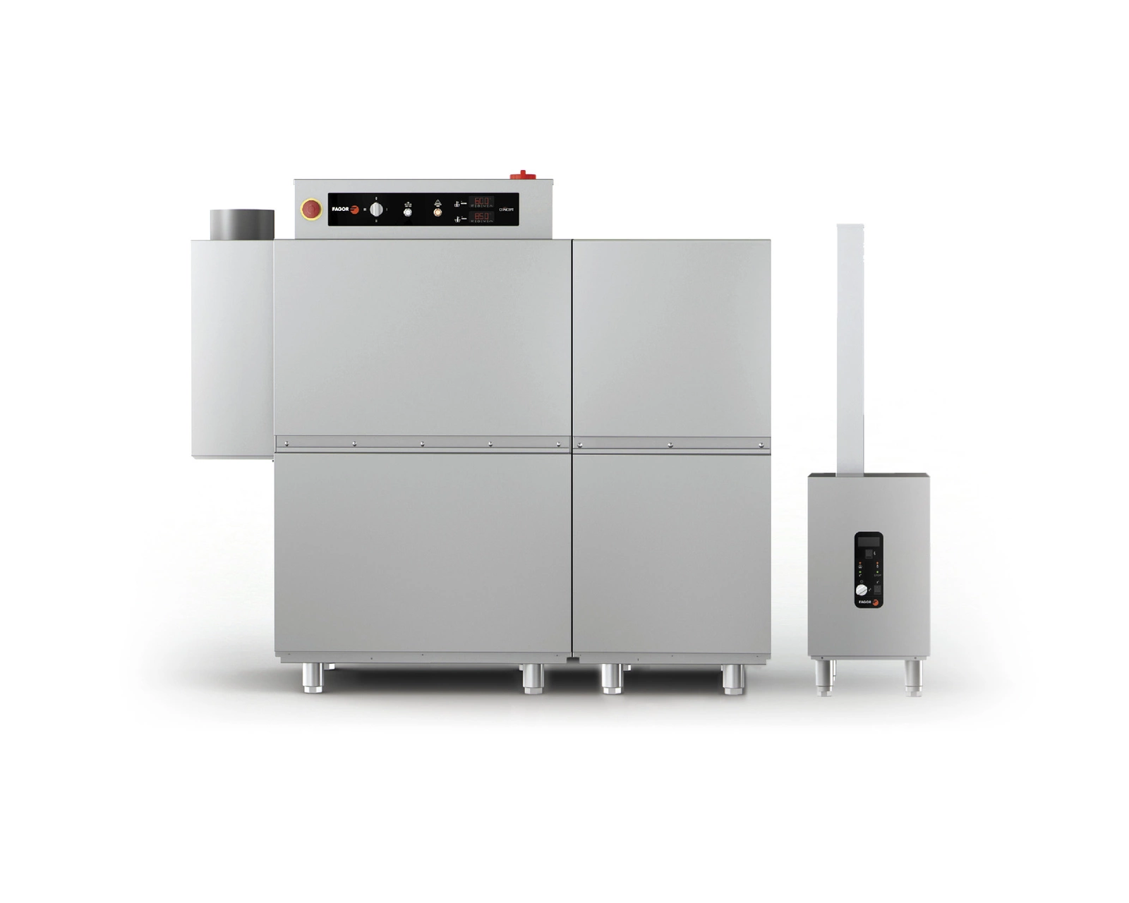 Urządzenie zostało zaprojektowane z myślą o maksymalnej wydajności i trwałości. Zmywarka tunelowa FAGOR CCO-180-L-ECO posiada modułowy system mycia i płukania, który pozwala na efektywne czyszczenie dużych ilości naczyń – nawet do 180 koszy na godzinę. Cała konstrukcja, w tym drzwi, ramiona myjące i płuczące, a także filtry, wykonana jest ze stali nierdzewnej AISI-304, co przekłada się na długą żywotność oraz odporność na intensywną eksploatację i działanie środków chemicznych.