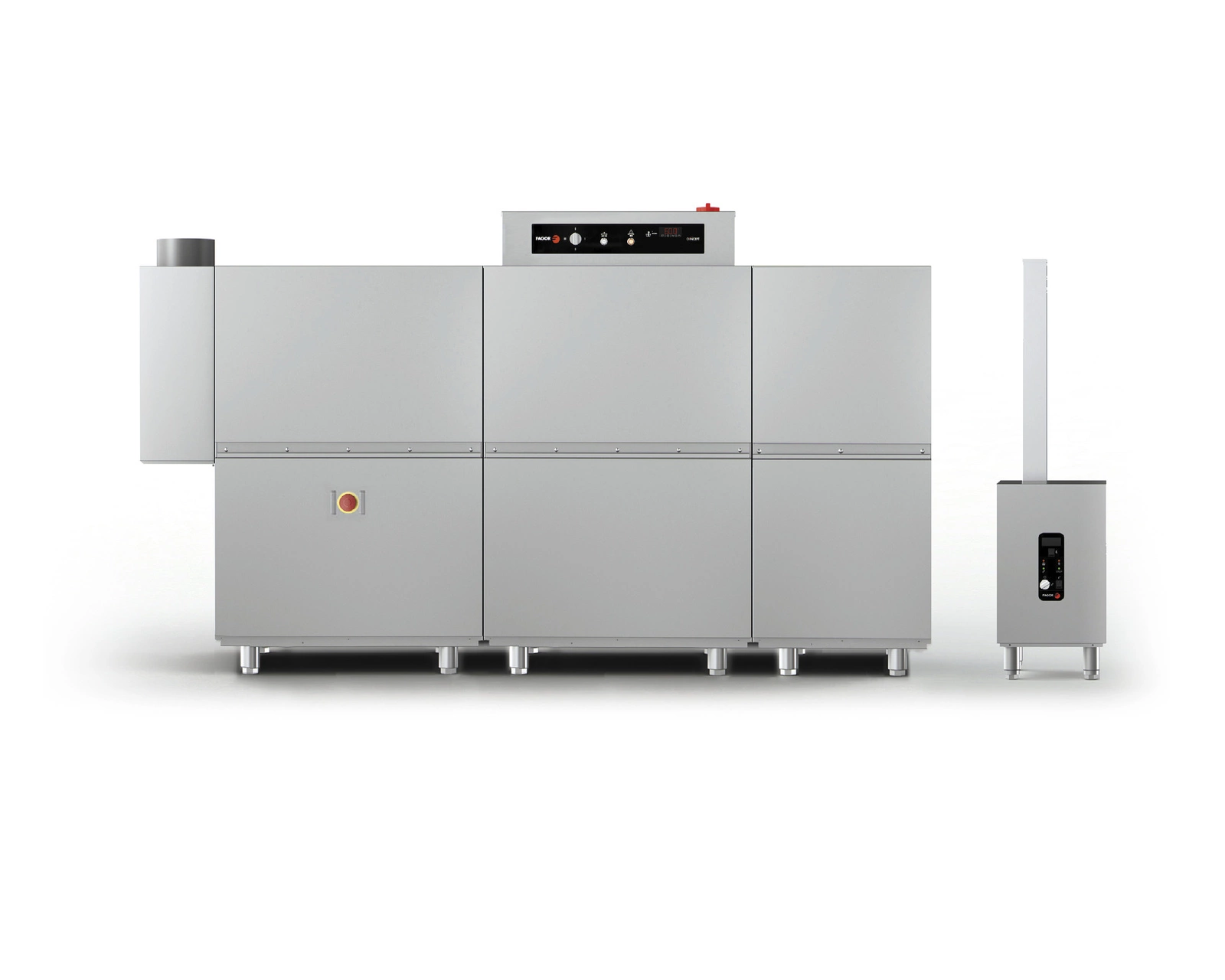 Zmywarka tunelowa FAGOR CCO-270-L-ECO została zaprojektowana z myślą o ciągłej pracy w dużych kuchniach przemysłowych. Jej tunelowa konstrukcja umożliwia liniowy przepływ koszy z lewej do prawej strony, co usprawnia logistykę pracy w kuchni. Kosze o wymiarach 50x50 cm pozwalają na jednoczesne mycie wielu naczyń, talerzy, sztućców oraz pojemników gastronomicznych. System pięciosegmentowych ramion myjących i płuczących 5x5 zapewnia równomierne rozprowadzenie wody i skuteczne usuwanie zabrudzeń nawet z trudno dostępnych miejsc. Dzięki dużej pojemności i możliwości dostosowania długości cyklu, zmywarka sprawdzi się zarówno w hotelach, jak i w kantynach pracowniczych czy cateringach.
