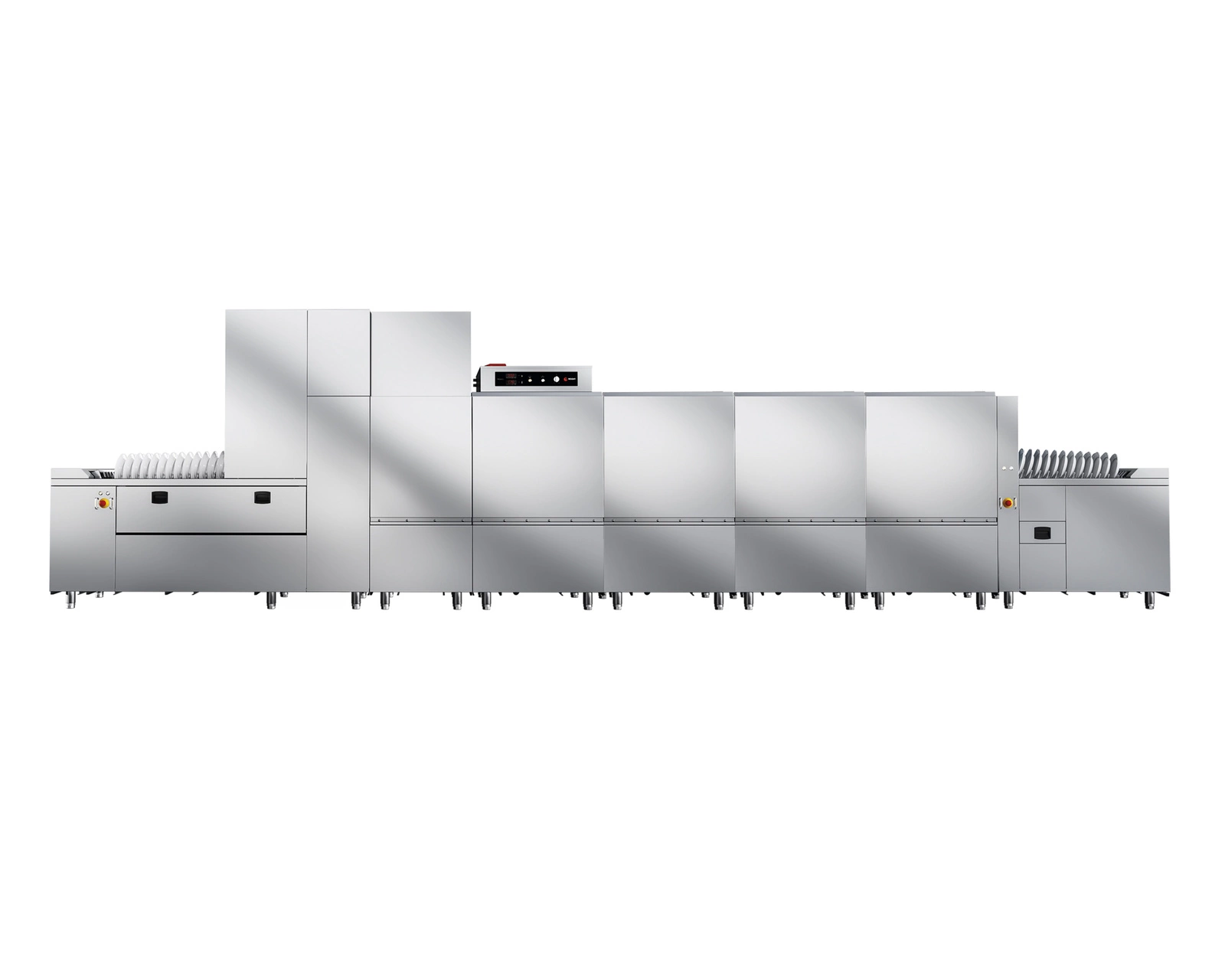 • Automatyka i bezpieczeństwo – Automatyczne wykrywanie naczyń za pomocą fotokomórki oraz czujniki otwarcia drzwi zwiększają komfort użytkowania i bezpieczeństwo pracy. System ANTI-BLOCK zabezpiecza przed zablokowaniem taśmy transportowej.