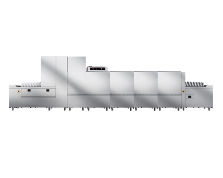 Zmywarka została zaprojektowana z myślą o maksymalnej wydajności i wygodzie użytkowania. Obejmuje wydzieloną sekcję załadunku (1,2 m) oraz rozładunku (2,2 m), co ułatwia organizację pracy w kuchni. Moduł antyrozbryzgowy na wejściu ogranicza rozpryski wody, a kurtyny oddzielające poszczególne sekcje wykonane są z materiałów odpornych na działanie chemikaliów i wysokich temperatur. System potrójnej filtracji oraz profilowane dno zbiornika umożliwiają łatwe i dokładne czyszczenie urządzenia po zakończonej pracy.