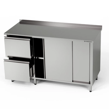 Stół roboczy nierdzewny z szafką i blokiem szuflad 210x70x85 cm | FORGAST
