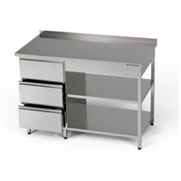Stół roboczy nierdzewny z blokiem szuflad i półką 120x70x85 cm | FORGAST