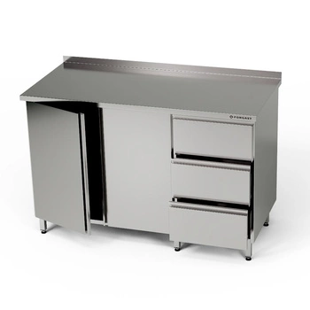 Stół roboczy nierdzewny z szafką i blokiem 3 szuflad 150x60x85 cm | FORGAST
