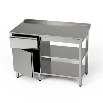 Stół roboczy nierdzewny z szafką i szufladą 140x60x85 cm | FORGAST