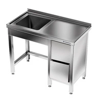 Stół nierdzewny ze zlewem 1-komorowym i blokiem szuflad 120x70x85 cm | FORGAST