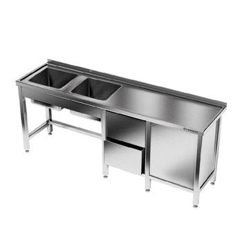 Stół nierdzewny ze zlewem 2-komorowym 260x70x85 cm | FORGAST