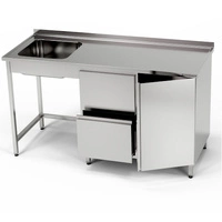 Stół nierdzewny ze zlewem 1-komorowym, szafką i blokiem szuflad 180x60x85 cm | FORGAST