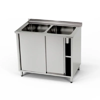 Stół nierdzewny ze zlewem 2-komorowym i szafką 100x60x85 cm | FORGAST