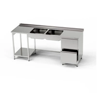 Stół nierdzewny ze zlewem 2-komorowym i szafką 190x60x85 cm | FORGAST
