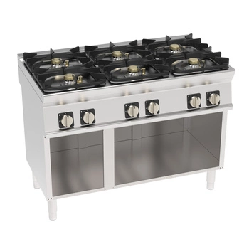 Kuchnia gastronomiczna gazowa super 6-palnikowa na podstawie z szafkę otwartą | TECNOINOX 713205